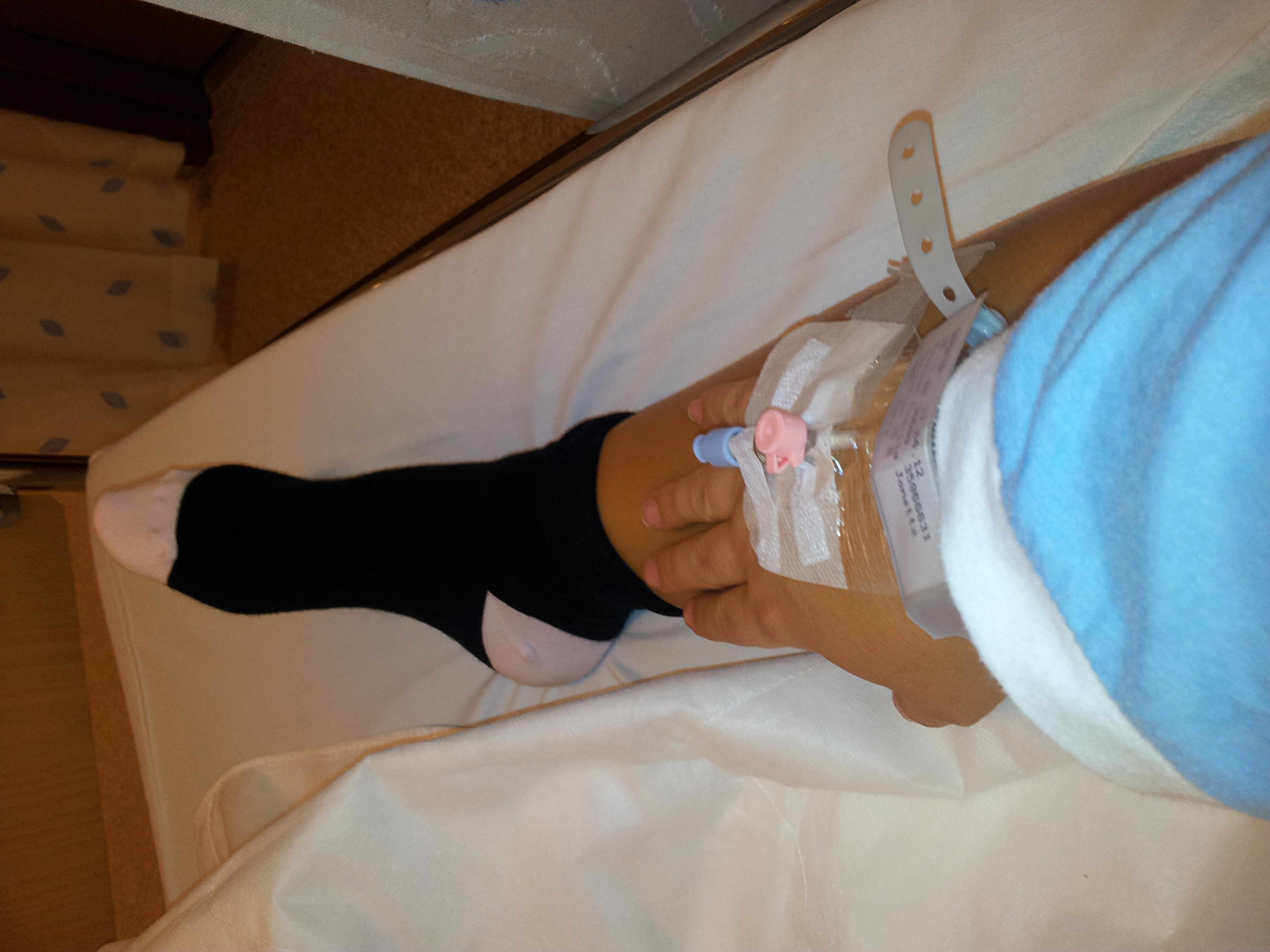 Sokker fra Lindex (sorte og rosa selvfølgelig), blå nydelig skjorte fra sykehuset i Porsgrunn og nål og plaster fra samme sted!;)